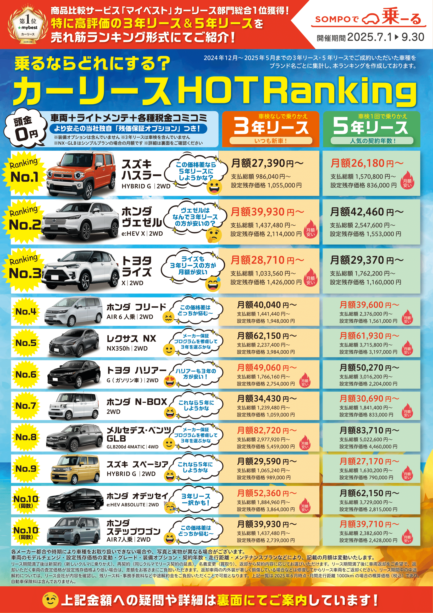 【SOMPOで乗ーる】乗るならどれにする?カーリースHOTRanking